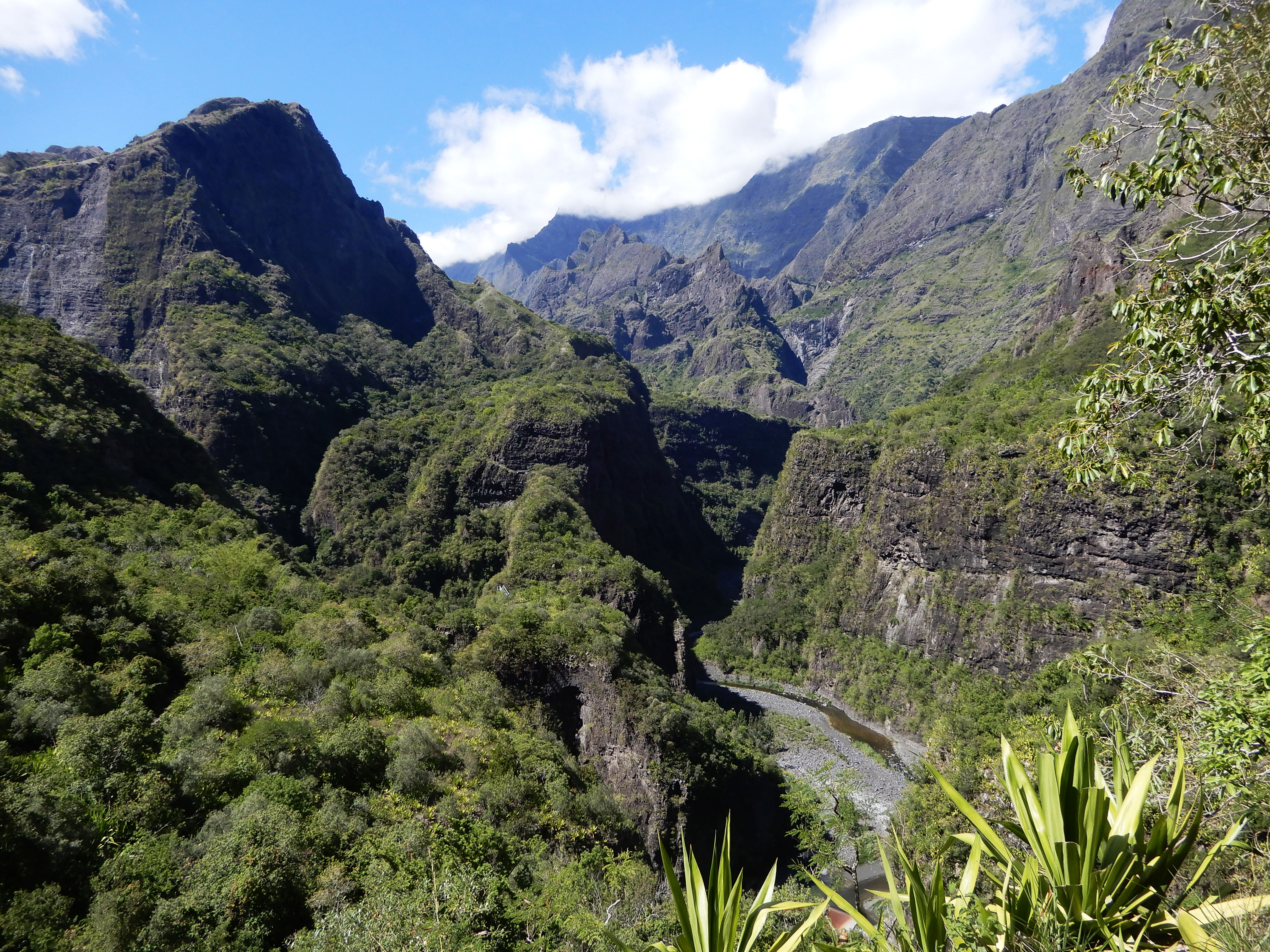 Nous avons rallongé notre deuxième journée car Grand-Place les Hauts – Deux bras ne prend que 2H30 de marche (en passant par Grand-Place). C’est pourquoi nous avons fait un détour à la Roche Ancrée, on a pris 5h au total pour rejoindre la piste de 4×4. Tout les gîtes étaient complets (randonnée effectuée début Janvier) et la seule disponibilité que nous avions étaient à Grand-Place les Hauts. Pour une première journée moins chargée, je conseillerai une nuit à Ilet à Bourse. A vous de voir où organiser votre nuit selon votre forme physique et du nombres d’heures que vous voulez faire.