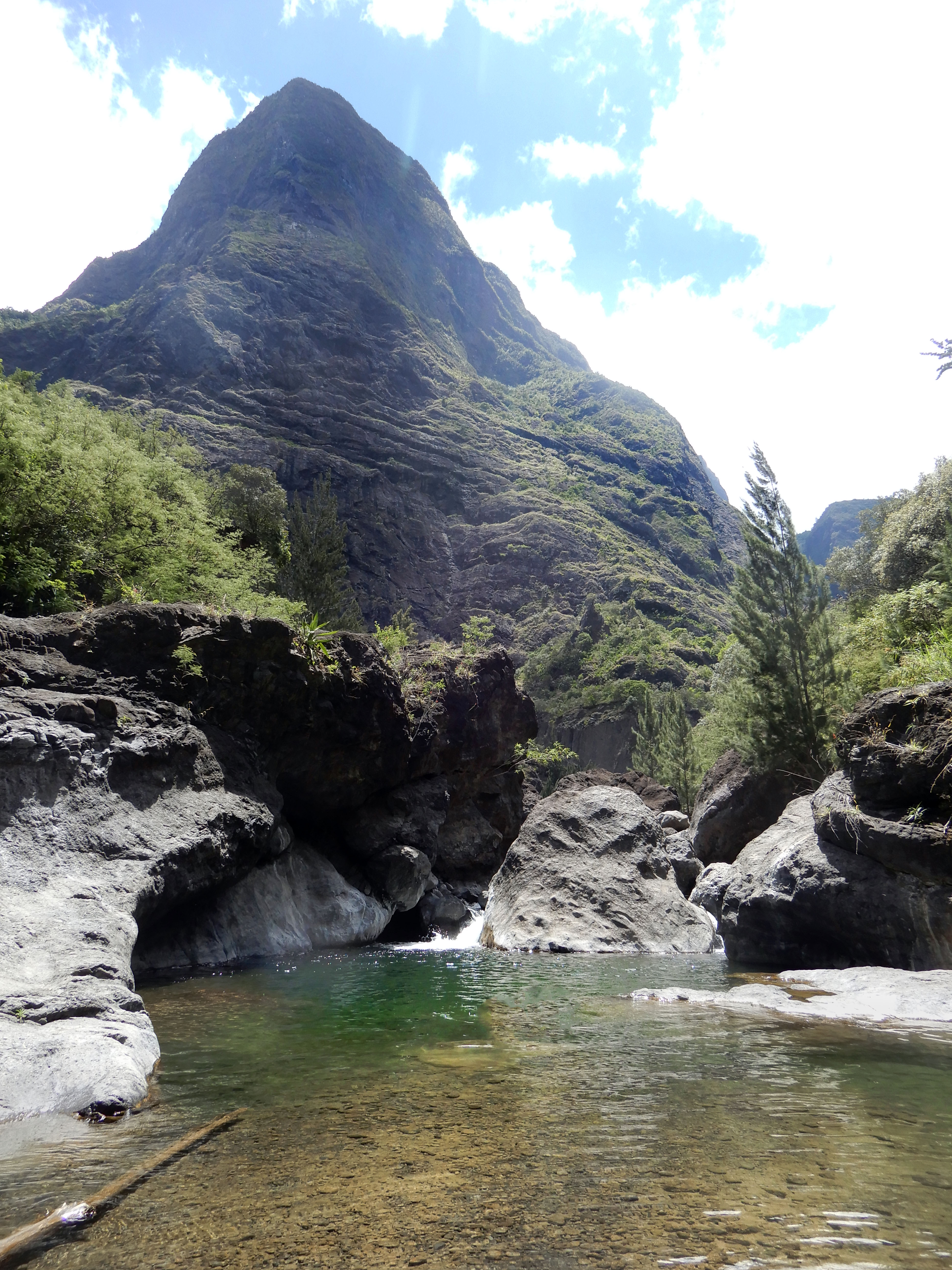 La suite est exactement la même chose que l’itinéraire sur une journée, nous sommes retournés à Deux-Bras par la rivière des galets, en profitant du Bassin du Bras d’Oussy par la même occasion.