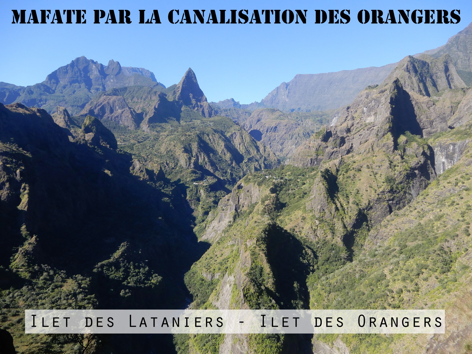 Il s’agit d’un des panoramas que je préfère sur le cirque et les îlets car on distingue différents îlets tels que : les Lataniers, les Orangers, Cayenne, Grand-place, Grand-place les hauts..