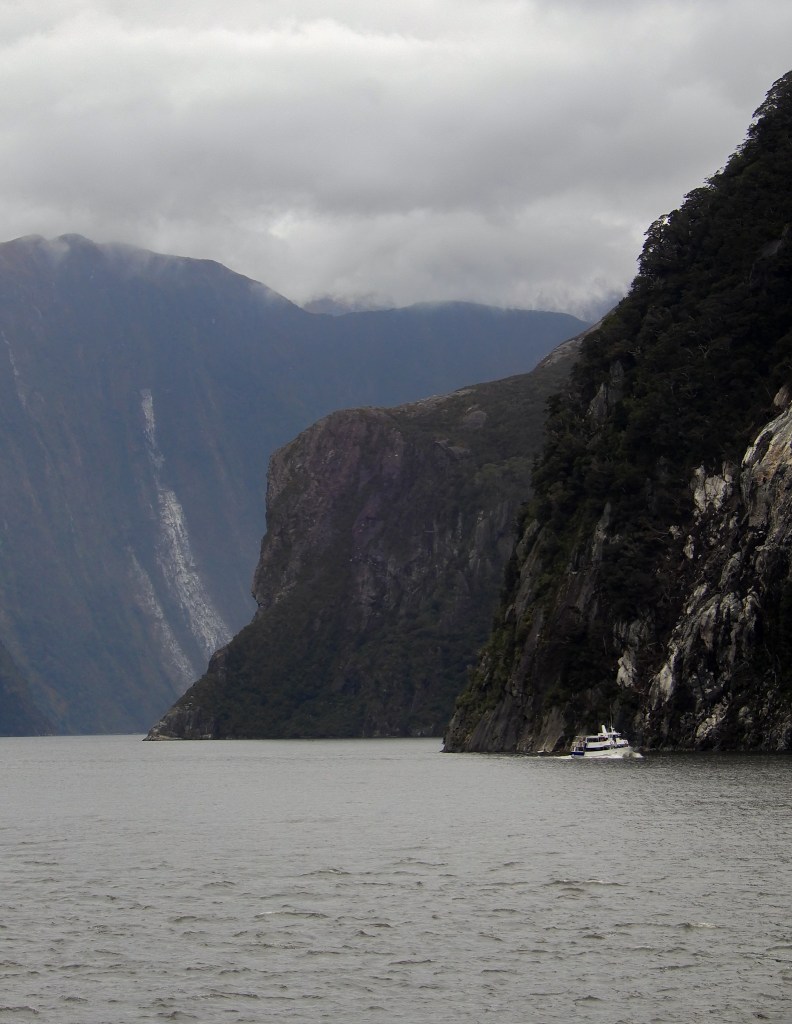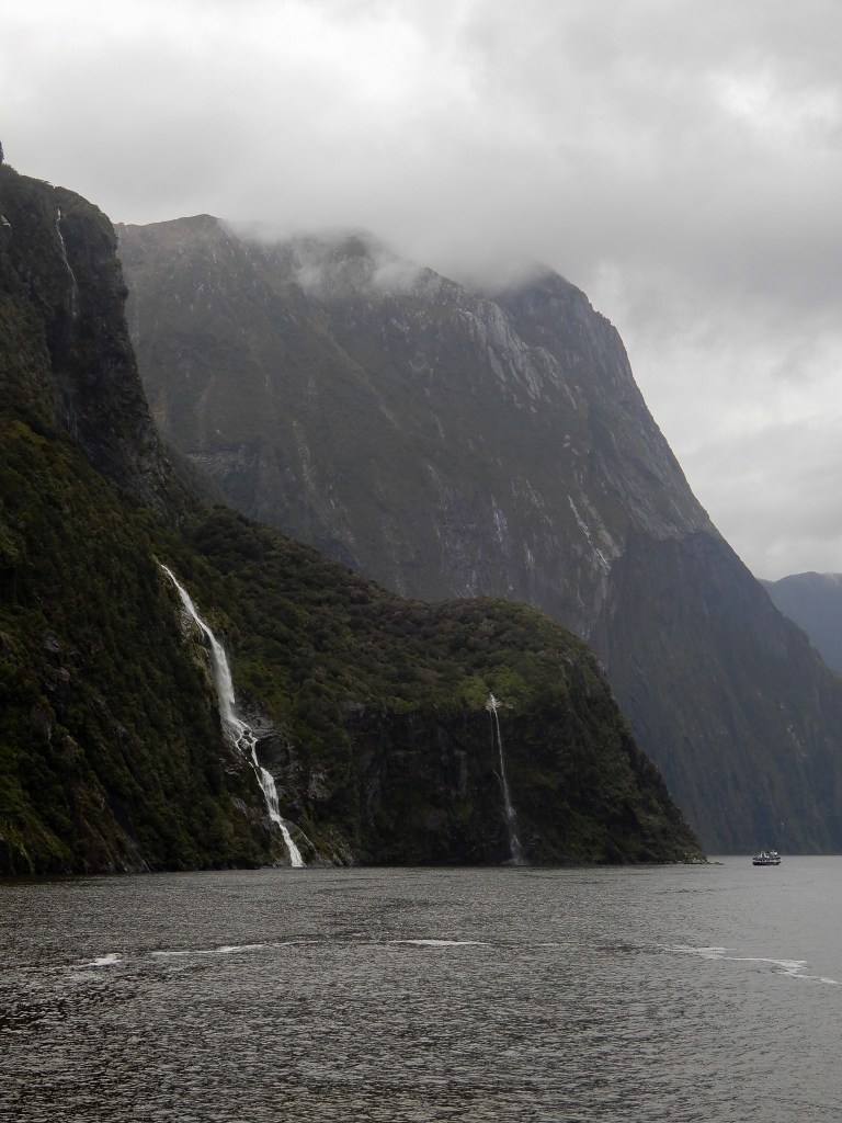 On ne présente plus ce lieu emblématique de la Nouvelle-Zélande : Milford Sound. C’est un endroit enchanteur avec son fjord, ses falaises abruptes souvent enveloppées de brume ou de pluie, et ses cascades plongeantes