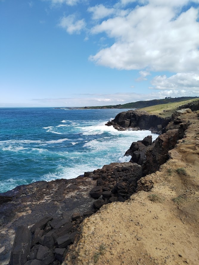 Et devinez quel animal, que j’ai essayé d’observer à de nombreuses reprises sur la côte Est sans succès, est finalement apparu à ma plus grande surprise ? Eh oui, des manchots ! À défaut de voir des dauphins, ce sont des manchots que nous avons pu observer grimper sur les rochers.
